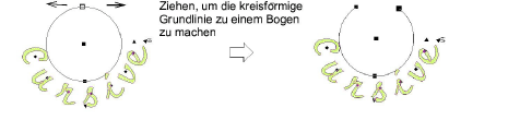 Zum Umformen von Schriftzügen mit kreisförmiger Grundlinie ziehen Sie den Griff in der Kreismitte, um den Radius anzupassen.